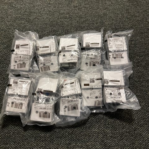 Vi har 9 stk. nye Fuga knap tangent med sort o ring i toppen af knappen til Fuga 2 polet enkelt stikkontakt med afbryder.