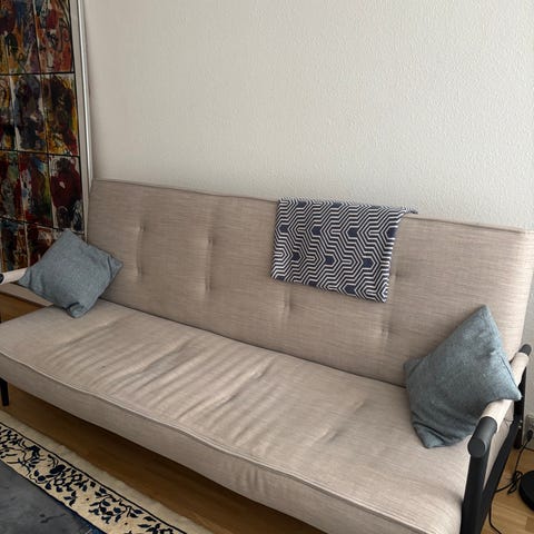 Jeg sælger min sovesofa jeg har haft den i cirka et år dog er den ikke brugt særlig meget grundet meget ophold i udlandet.