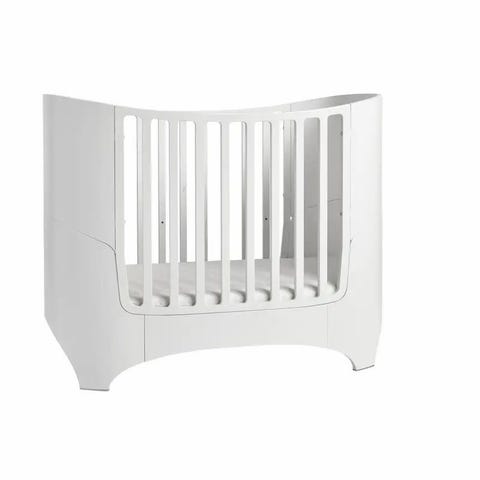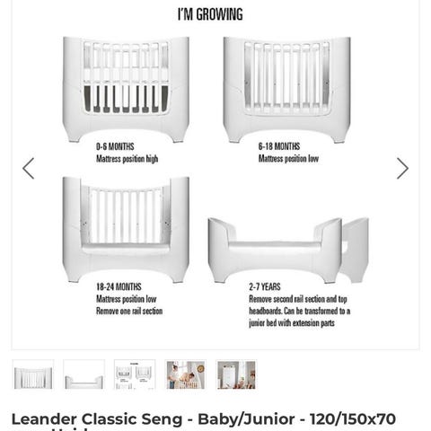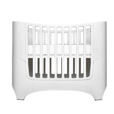 Leander tremmeseng i hvid. Klassisk tremmeseng med afrundede hjørner og lameller hele vejen rundt, som giver godt udsyn til barnet. Sengen er egnet til spædbørn og mindre børn og kan bruges som fast seng på børneværelset. Fremstillet i malet træ med glatte overflader, der er lette at rengøre. Velegnet til brug med standard madras i tilsvarende mål.