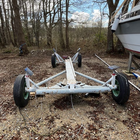 Solid bådvogn i god stand, som kan tage 12 tons.