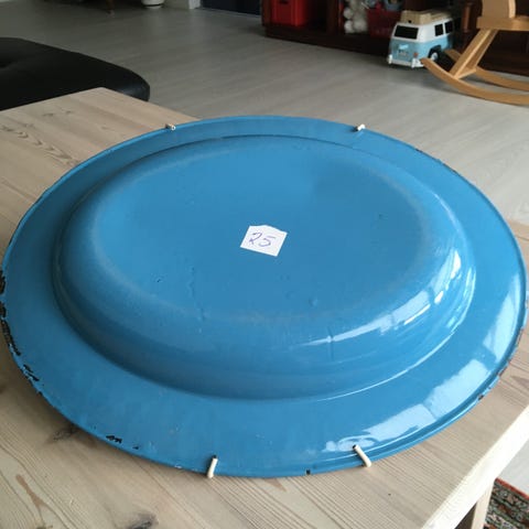 Spand i 2 lag. 19,5 cm høj incl låg.Knap 2q cm i diameter.