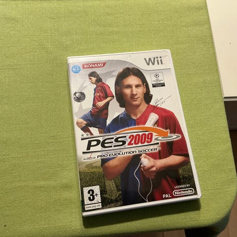 Konami Pro Evolution Soccer 2009 Nintendo Wii spil. Fodboldspil til Nintendo Wii med licenserede hold og turneringer. Spillet understøtter Wii Remote-styring og er markeret til aldersgruppen 3+ ifølge PEGI. Leveres i original æske med spil-disk og omslagstekst på nordiske sprog.