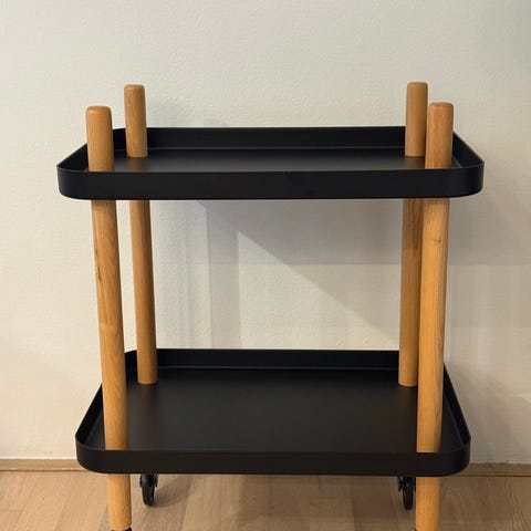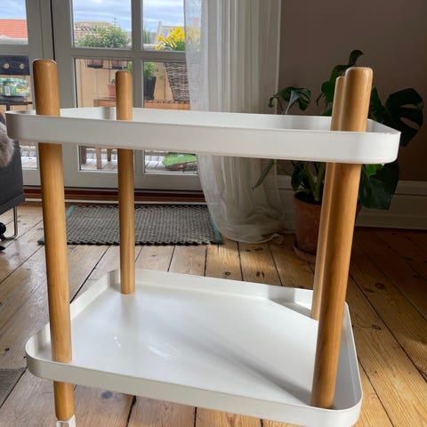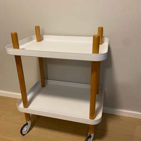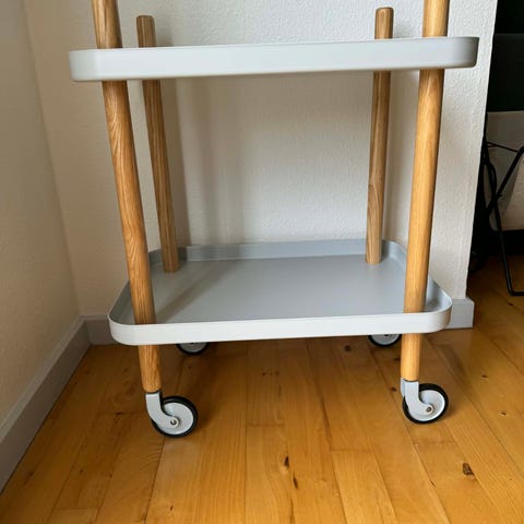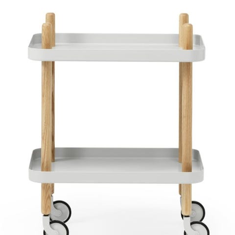 Normann Copenhagen Block rullebord med hjul i hvid og ben i asketræ. Det fine rullebord kan f.eks. bruges som barbord.