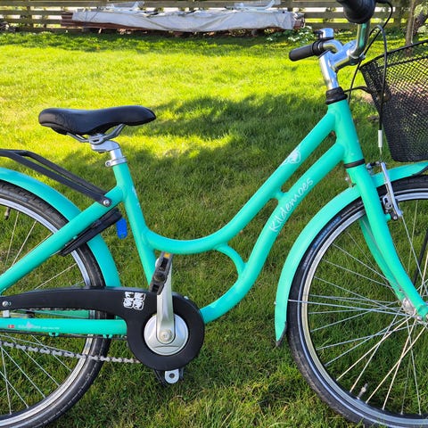 Kildemoes børnecykel med 24" hjul i cremefarve. Cyklen har lav indstigning med buet stel, kædeskærm, bagagebærer og skærme for og bag. Udstyret med reflekser på hjul og pedaler samt justerbar sadel og styr, så cyklen kan tilpasses barnets højde. Velegnet som hverdagscykel til skole og fritid.