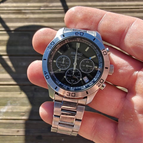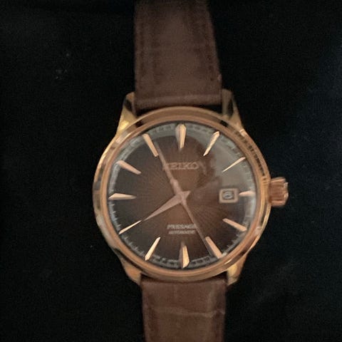 Seiko Presage herreur i rustfrit stål med hvid urskive. Uret har analog visning med time-, minut- og sekundviser samt datovisning kl. 3. Mekanisk automatisk værk, synligt gennem glasbagkasse. Stållænke med foldelås. Velegnet som klassisk hverdags- og kontorur til mænd.