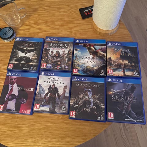 Playstation4 spilpakke med flere titler. På billederne ses blandt andet Nioh, Assassin’s Creed Unity, FIFA 17 og FIFA 18 på Blu-ray diske til PS4. Spilskiverne er originale Playstation 4 udgivelser, som kræver en PS4-konsol for at kunne spilles. Velegnet til samling eller som ekstra spil til eksisterende Playstation4 system.