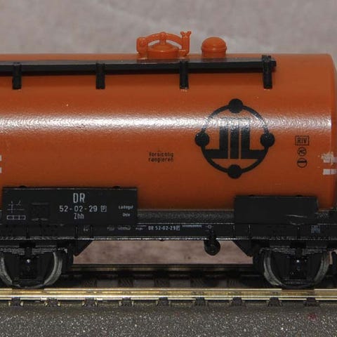 Vognen er brugt og har brugsspor, primært i form af støv/snavs, samt et lille mærke på selve tanken. Koblinger passer til Märklin bøjlekoblinger.