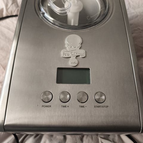 Wilfa ismaskine i rustfrit stål med integreret kompressor. Maskinen har digitalt display og betjeningsknapper på fronten til valg af funktioner og tid. Låget er gennemsigtigt, så indholdet kan ses under omrøring, og skålen indvendigt er i metal med aftagelig plastikrører. Velegnet til fremstilling af is og sorbet i hjemmet.