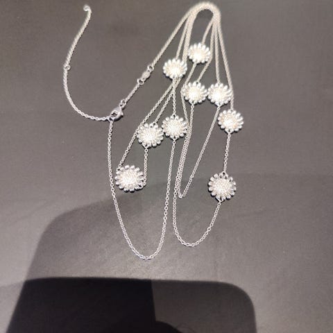 H&M øreringe til kvinde med krystaldetaljer. Øreringene har flere hængende kæder besat med små krystaller, som giver et glitrende udtryk. Velegnet til brug ved både hverdag og fest. Materialet er en blanding af metal og krystal.