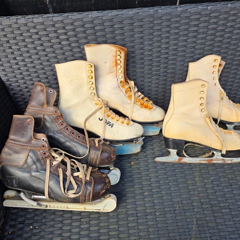 Roxa, R Fitness og Fila ishockeyskøjter til børn og voksne. Flere par i forskellige modeller og farvekombinationer, primært i sort, hvid og grå. Klassiske ishockeyskøjter med snørebånd samt et par justerbare skøjter med spænder. Egnede til børns brug på isbane til leg og begyndende ishockeytræning.