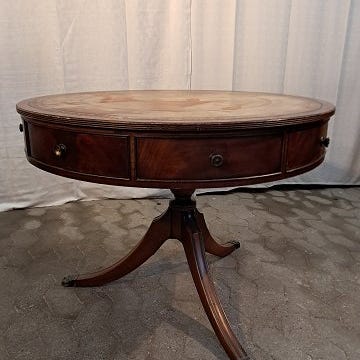 Kan slåes ud til et helt rundt bord. Udtræksskuffe.