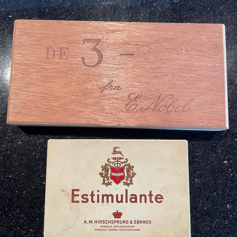 Cigar kasse, tin, 123 år gl.