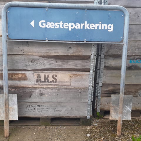 Stander i galvaniseret stål, total højde 75 cm. med skilteplade i 2 mm aluminium 40 x 15 cm. med afrundede hjørner foroven.