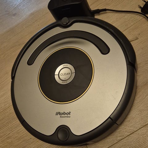iRobot Roomba 694 robotstøvsuger i grå og sort. Modellen er egnet til daglig støvsugning af gulve og tæpper og er udstyret med roterende sidebørste og børster under bunden til opsamling af støv og snavs. Robotstøvsugeren navigerer automatisk rundt i rummet og kan køre under mange møbler afhængigt af frihøjden. Velegnet til almindelig husholdning og kan bruges på forskellige gulvtyper som hårde gulve og lavluvede tæpper.