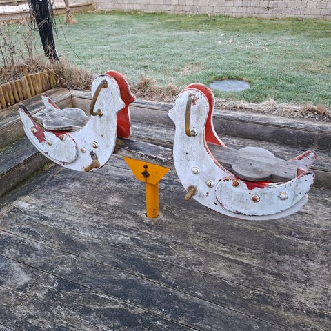 Vippe i kraftige materialer, trænger til ny træbeskyttelse/maling. -bud modtages