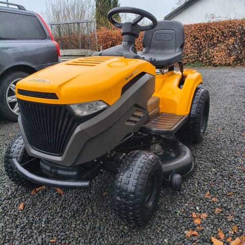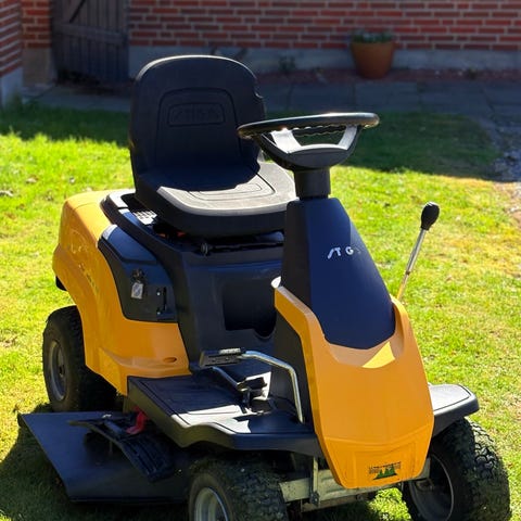 Stiga Tornado 3108H med 14.5 hk briggsandstratton motor, 108 cm klippebord, elektrisk tilkobling af klipper og hydrostatisk fremdrift med fodpedal.