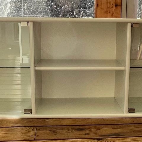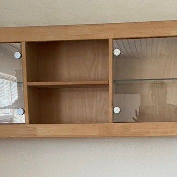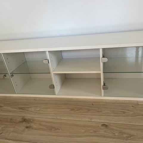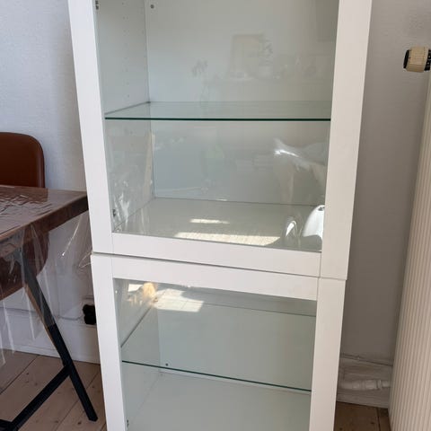 Skabene har hængt i alrum og er i god stand og har glashylder. Ydersiderne er i hvid højglans.