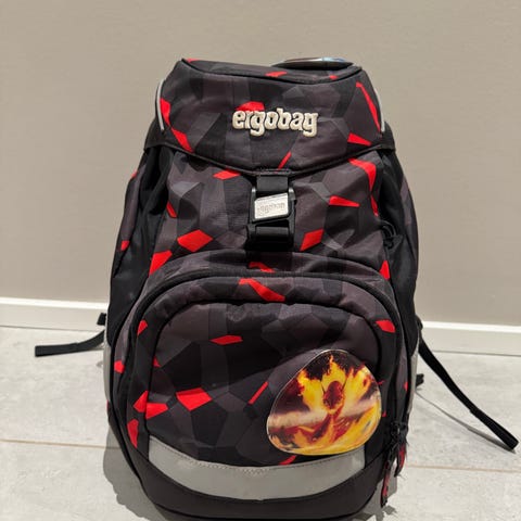 Ergobag skoletaske med gymnastik taske som kan klikkes på. Pæn stand. Kan indstilles efter højde. Hård bund.