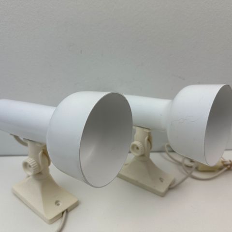 Væglampe, Hvid retro væglampe, Der er her tale om en retro væglampe / sengelampe i hvid-lakeret metal. Fremstår med den del brugsspor og patina.