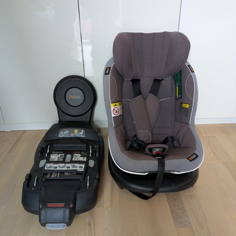 BeSafe iZi Modular autostol til børn op til ca. 18 kg. Autostolen er en del af BeSafe iZi Modular-systemet og monteres på en base (isofix-base afhængigt af bil og base, ikke vist fuldt på billederne). Stolen kan typisk bruges både bagudvendt og fremadvendt, afhængigt af barnets alder, vægt og producentens anvisninger.