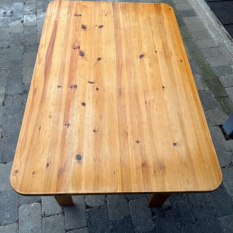 Ikea Ingo træbord 120x75 cm. Fint træbord som dog er godt brugt. Egner sig godt hvis du vil sætte dit eget præg på det og f.eks. male det
