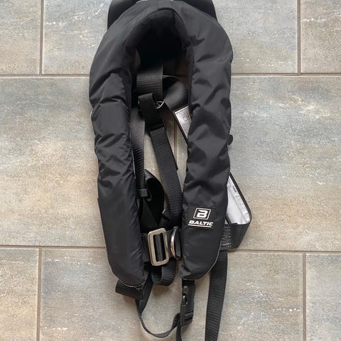 Lalizas Lift oppustelig redningsvest i sort. Redningsvesten har justerbare remme og lukkes med spænde foran. Velegnet som personlig flydeudstyr til sejlads og anden vandsport, hvor der kræves oppustelig redningsvest med CE-mærkning og brugsanvisning integreret i vesten. Har ikke være brugt de sidste 4 år da vi har solgt båden.