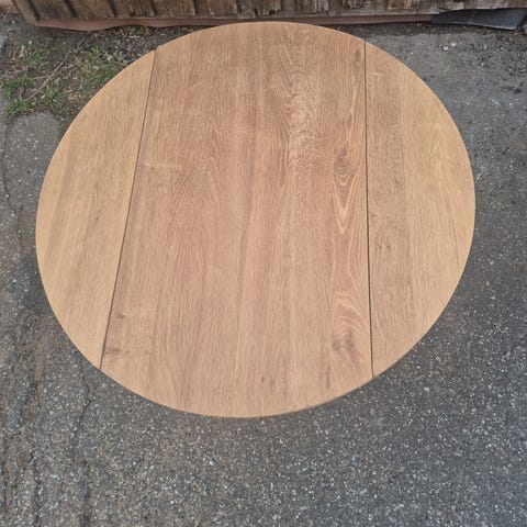 Rundt bord i solid egetræ med naturlig struktur og patina.- Bemærk at mail, chat og beskeder ikke besvares, og varen skal købes på knappen "Gå til varen". Efter reservering af varen har du 10 dage til at afhente den i den butik, varen er på lager i.