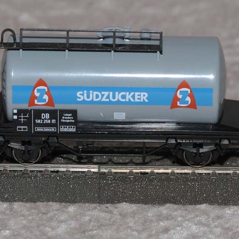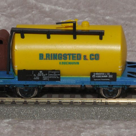 Vognen er brugt og har brugsspor, primært i form af lidt støv/snavs. Desuden mangler gelænderet oven på tanken. Koblinger passer til Märklin bøjlekoblinger.