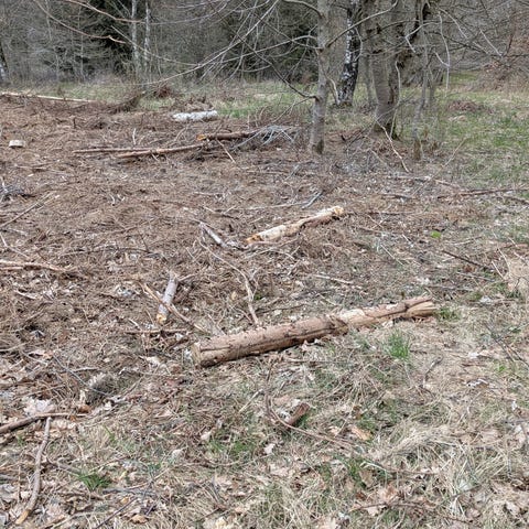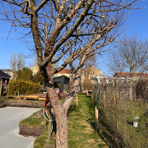 Haveaffald bestående af grene, kviste og mindre stammer, egnet til bortkørsel, flisning eller brug som brænde efter passende opskæring og tørring. Velegnet til privat havebrug, kompostering eller anden form for genanvendelse af træmateriale.