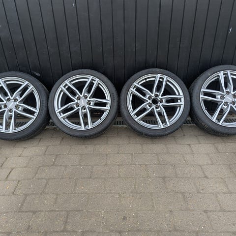 Har disse super flotte Tomason TN16 18" fælge til salg med godt dækmønster. Fælgene har meget små ridser, som er svære at se. De er i rigtig god stand, jeg har kun brugt dem i én sæson. Jeg sælger dem, fordi jeg har solgt bilen. Dæk: Bridgestone Potenza Adrenalin 235/40 R18 95W XL med 80% dækmønster.
