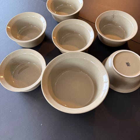 6 små beige ubrugte Höganäs Keramik skåle. Måler H6 cm Ø11 cm. Sælges samlet for 200 kr og afhentes i Skovshoved/Klampenborg. SENDES IKKE. Se også mine andre annoncer!!!