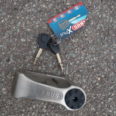 Solid / heavy duty skivebremselås til MC / scooter med skivebremser - fra Abus.