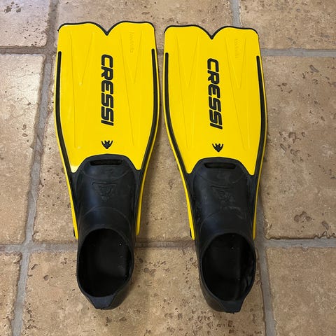 Beuchat X-Voyager svømmefødder i blå med sort fodlomme. Størrelse 42-43 angivet på sålen. Lukkede fodlommer i blødt gummimateriale og stive finner i plast for bedre fremdrift i vandet. Velegnet til snorkling og almindelig svømning.