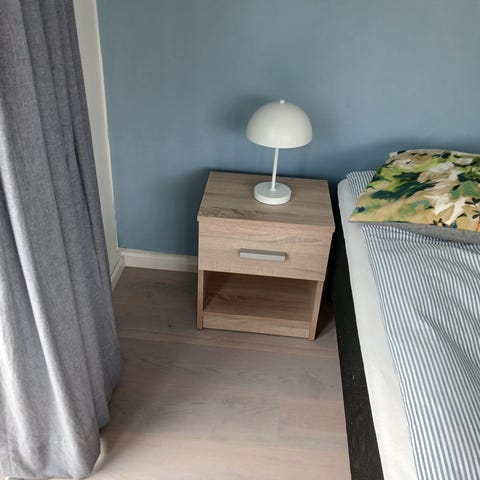 Fin Sengebord fra jysk, fejler ingenting udover en lille skade/hak ved skuffenskant, men ikke noget man ser, kan ses på den sidste billede.