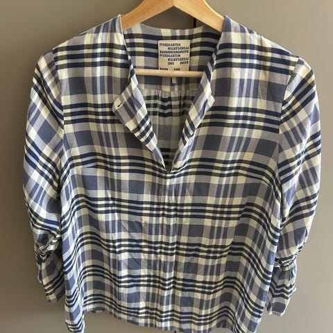 By Malene Birger skjorte til kvinder i str. 34. Skjorten er fremstillet i 100 % linned og er blå med tynde, lodrette striber. Klassisk skjortekrave, lange ærmer og gennemknappet front. Let, vævet kvalitet egnet til hverdagsbrug eller som let overdel.