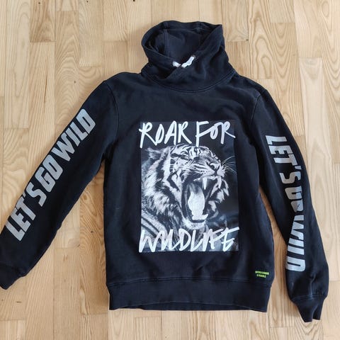 Rigtig fin Gorilla Tag hættetrøje med en gorilla hånd, der sidder fast i lommen i en snor. Str er US str YS (Young small) som svarer til ca 8-10 år. Den er til den mindre side.