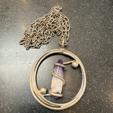 Halskæde, guld, 585 / ametyst, Meget smuk vintage halskæde af ametyst prydet med 14 karat guld lås, stemplet 585. Mål: L. 46x største ametyst 2x1,2 cm, 64 gr. Til salg 1540 kr.