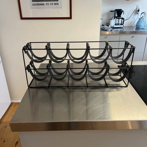 Plads til 12 flasker i alt. To moduler a 6 flasker. Design Tommy Larsen.