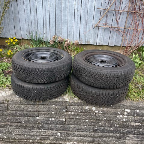Sælger disse 4 stk. 14” vinterdæk med ca. 5-6 mm mønster monteret på stålfælge. Sommerdæk fra Continental med mange kilometer endnu.