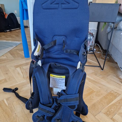Justerbare remme og spænder giver mulighed for tilpasning til både barn og voksen. Egnet til transport og gåture, hvor barnet kan sidde højt og frit med udsyn.
