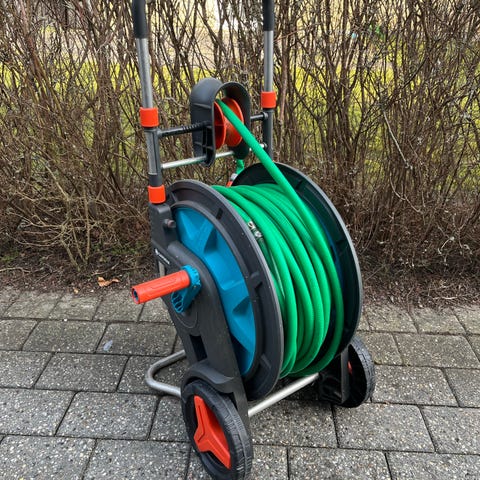 Slangevogn fra Gardena i meget høj kvalitet. Brugt få gange. Inkl kvittering med garanti fra Gardena.