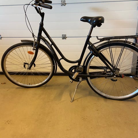 Rød damecykel med 7 indvendige SRAM gear. Gear fungerer ikke p.t. Kabel skal nok fornyes