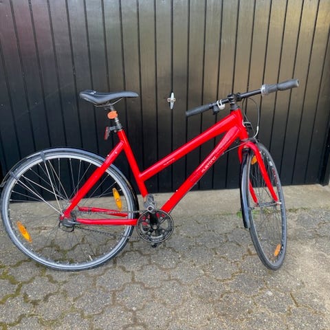 Rød damecykel med 7 indvendige SRAM gear