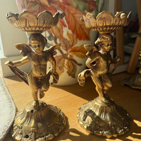 Superflot med masser af gulddetaljer og dekorative fugle. Højde 31,5 cm, passer til bloklys. Prisen er fast og bud på denne vare vil blive afvist. Er ikke fra Ellos, men fra Next, hvilket jeg ikke kunne vælge.