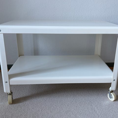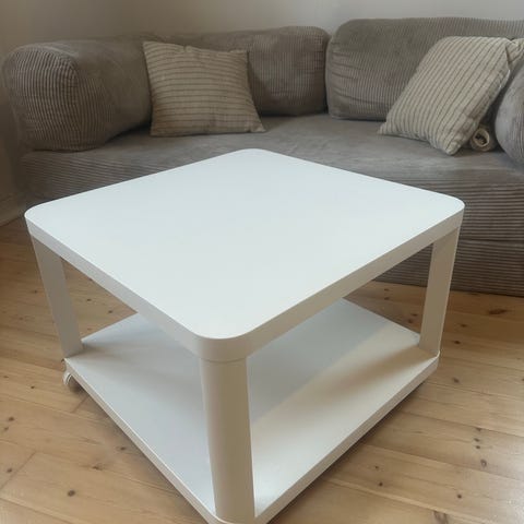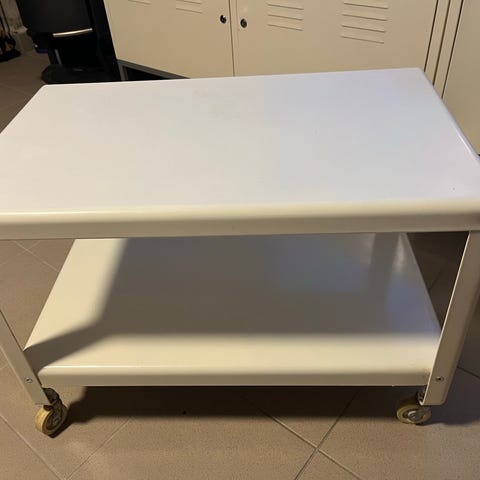 Sofabord i hvid metal nem at flytte på og renholde Mål l 69 B 41 H 49 cm .