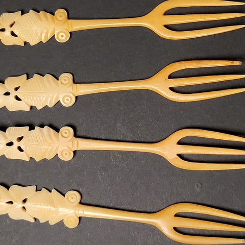 Andre samleobjekter, Pålægsgafler sølvplet, 2 pålægsgafler sølvplet med gravering på bagsiden ( 1947). Sælges helst samlet 10 kr/stk