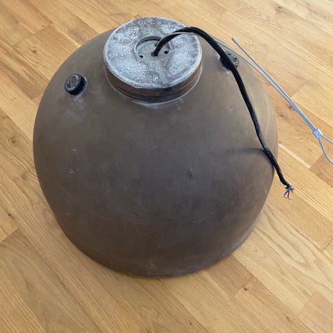 Sælger denne sorte københavner lampe. Da jeg ikke får den færdiggjort og heller ikke har plads. Den mangler kun bolte og ophæng. 45 cm i diameter.