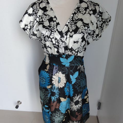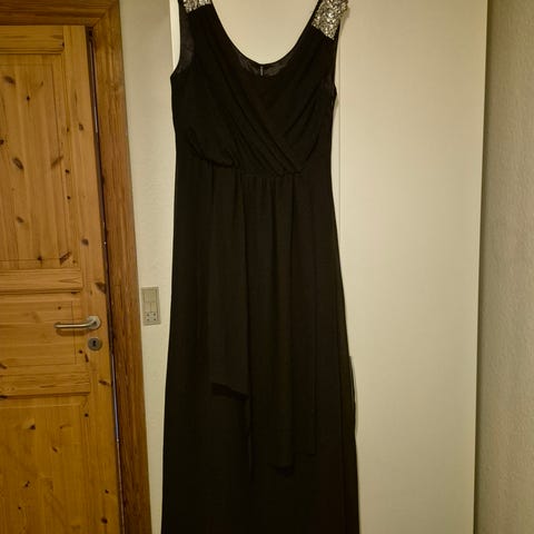 b.young festkjole til kvinder i str. 44 Kjolen er sort og fremstillet i polyester. Modellen har tynde stropper og rynket detalje ved halsudskæringen samt blomsterapplikationer foran. Velegnet som fest- eller cocktailkjole. Nederste del fremstår let og løs i pasformen. Indvendigt er der glat foer for bedre komfort.