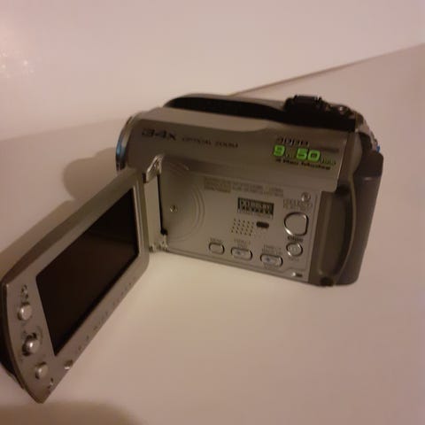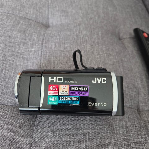 JVC Everio GZ-MG505E harddisk-videokamera. Det er et kompakt videokamera med 3CCD-sensorer, der optager på en intern harddisk.