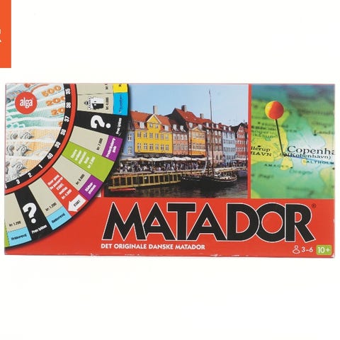 Dette er det originale danske Matador brætspil, hvor spillere kan købe, sælge og leje ejendomme for at øge deres kapital. Spillet indeholder et spillebræt, kort, penge, terninger og spillebrikker. Det anbefales til spillere over 10 år og kan spilles af 3-6 personer.